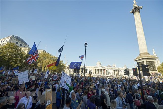 Tuần hành ở thủ đô London, Anh ngày 20/10, kêu gọi Chính phủ cho phép công dân nước này có tiếng nói cuối cùng về Brexit. (Nguồn: AFP/TTXVN)