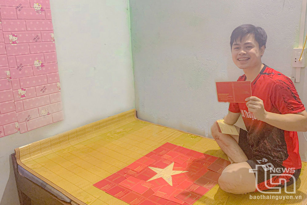 Chàng trai khuyết tật "vẽ" cờ Tổ quốc từ 30 giấy chứng nhận hiến máu
