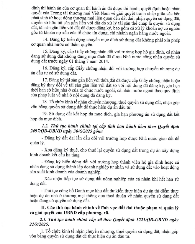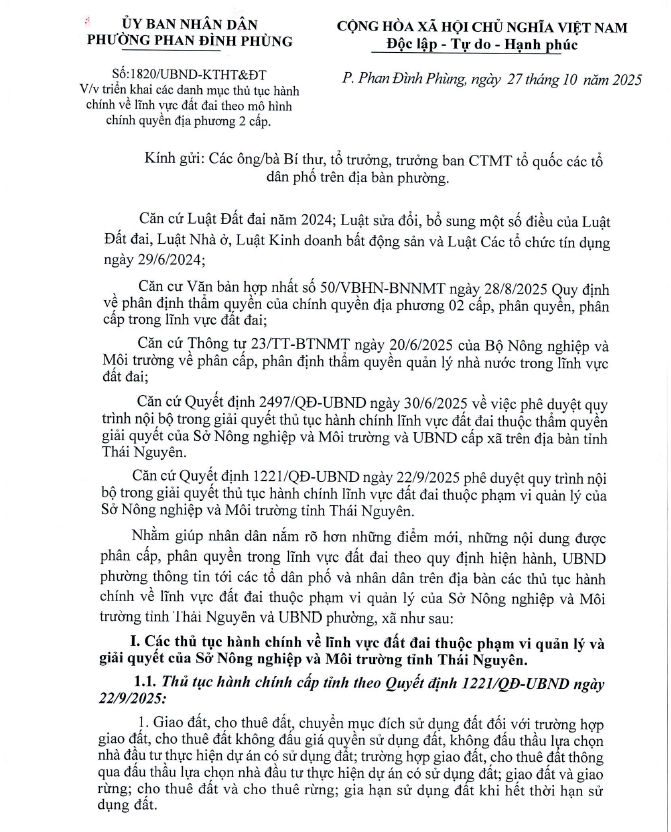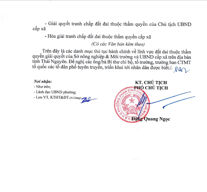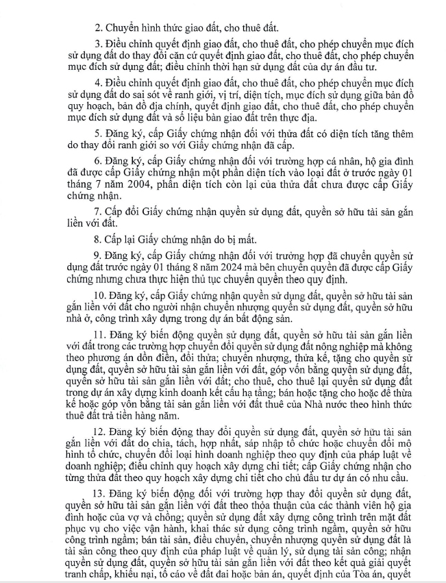 Công văn triển khai các danh mục thủ tục hành chính về lĩnh vực đất đai theo mô hình chính quyền địa phương 2 cấp.