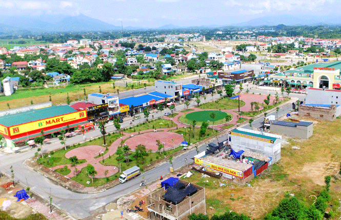 Diện mạo đô thị ở thị trấn Hùng Sơn (Đại Từ) được đầu tư xây dựng ngày càng khang trang, đồng bộ. Ảnh: Mạnh Hùng