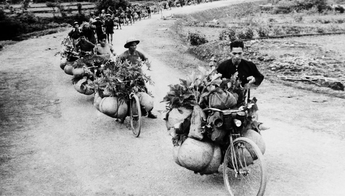 Binh đoàn xe đạp thồ trên đường lên Điện Biên năm 1954. Ảnh: Tư liệu
