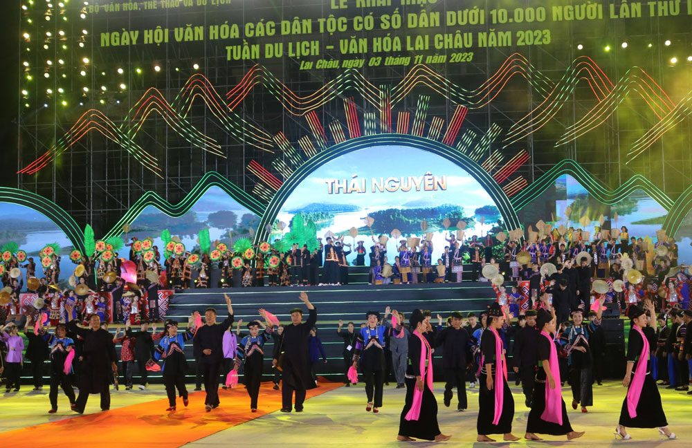 Màn trình diễn của đồng bào dân tộc Ngái tỉnh Thái Nguyên tại Lễ khai mạc Ngày hội (tổ chức tối 3-11 tại Quảng trường Nhân dân tỉnh Lai Châu).