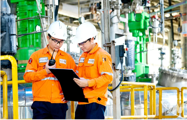 Nhân viên Công ty TNHH Khai thác Chế biến khoáng sản Núi Pháo trao đổi về giải pháp nâng cao hiệu quả hoạt động của dây chuyền chế biến sâu tinh quặng xuất khẩu.