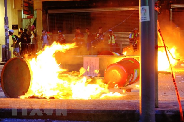 Cập nhật ngày: 11/10/2019 08:17 (Lượt xem: 8270)Người biểu tình đốt phá trên đường phố tại Hong Kong. (Ảnh: THX/ TTXVN)