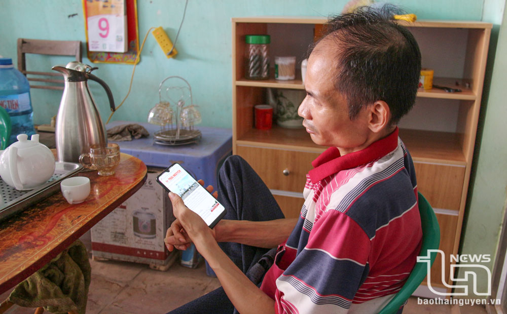 Nhờ có điện thoại kết nối 4G, anh Phạm Văn Tình (xóm Đồng Bốn, xã Tân Thành)