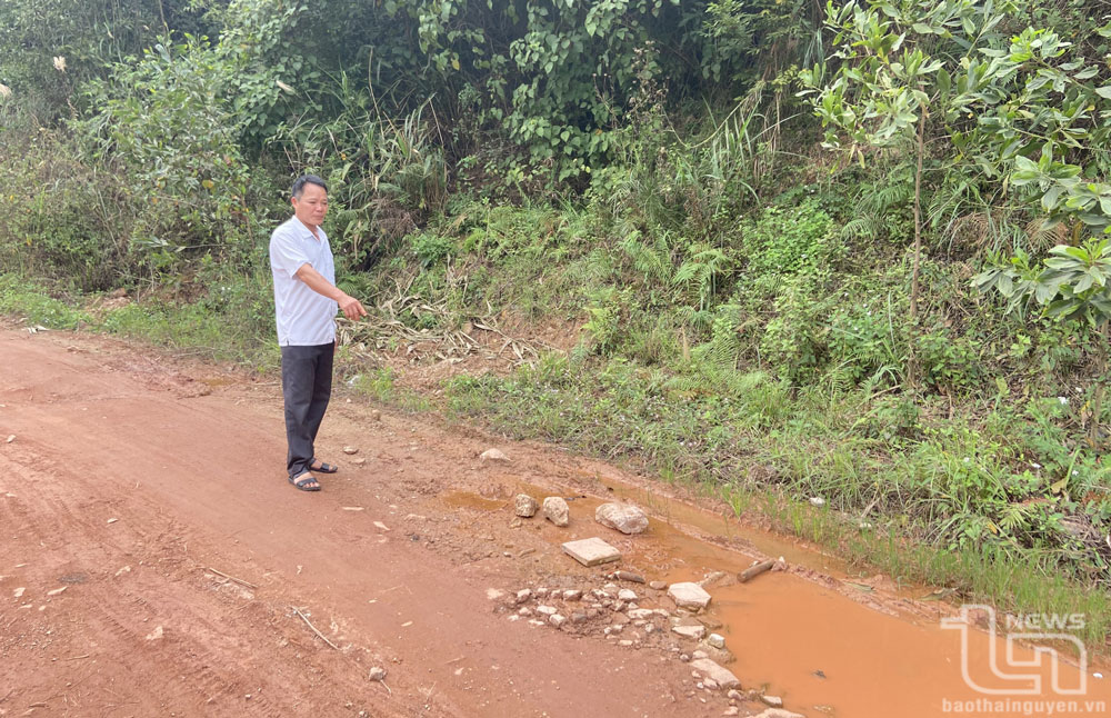 Chỉ vào các vũng nước sâu trên mặt đường, những đoạn đường lổn nhổn đá dăm, ông Đặng Văn Đào, một người dân sinh sống ở khu vực này, than thở: Đoạn đường bê tông dài chừng 600m, rộng từ 3-5m này vốn bằng phẳng và sạch sẽ, có lề để tránh xe, có rãnh dọc thoát nước ở hai bên nên bà con chúng tôi đi lại thuận tiện. Nhưng năm 2020, trong quá trình Công ty CP Nước sạch Thái Nguyên thực hiện Dự án Nhà máy nước Nam Núi Cốc, đoạn đường gần như bị phá nát.