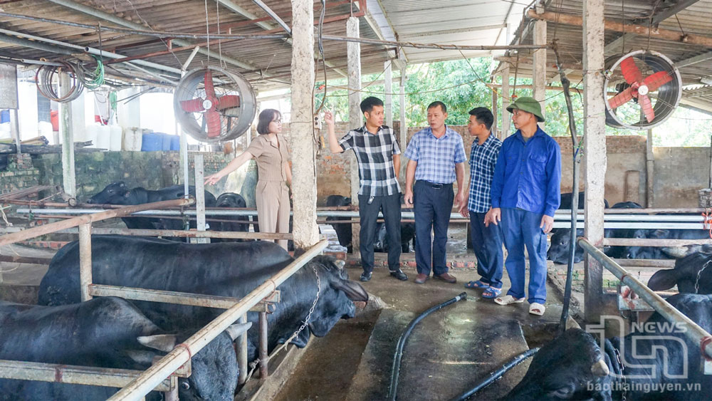 tiêu thụ sản phẩm tại xã Nga My (Phú Bình) luôn chủ động phòng bệnh cho đàn bò.