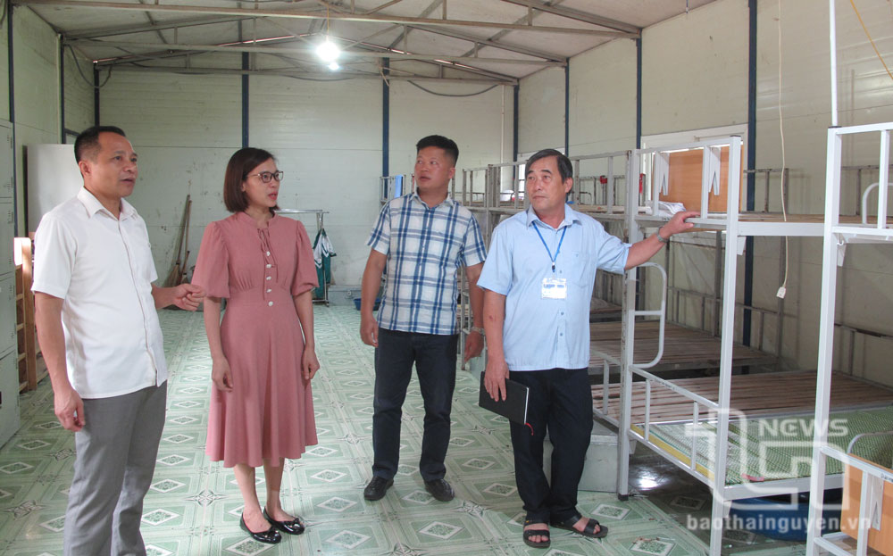 Lãnh đạo Phòng Giáo dục và Đào tạo huyện Võ Nhai và Trường Phổ thông Dân tộc bán trú THCS Nghinh Tường kiểm tra điều kiện ở bán trú của học sinh trước thềm năm học mới.