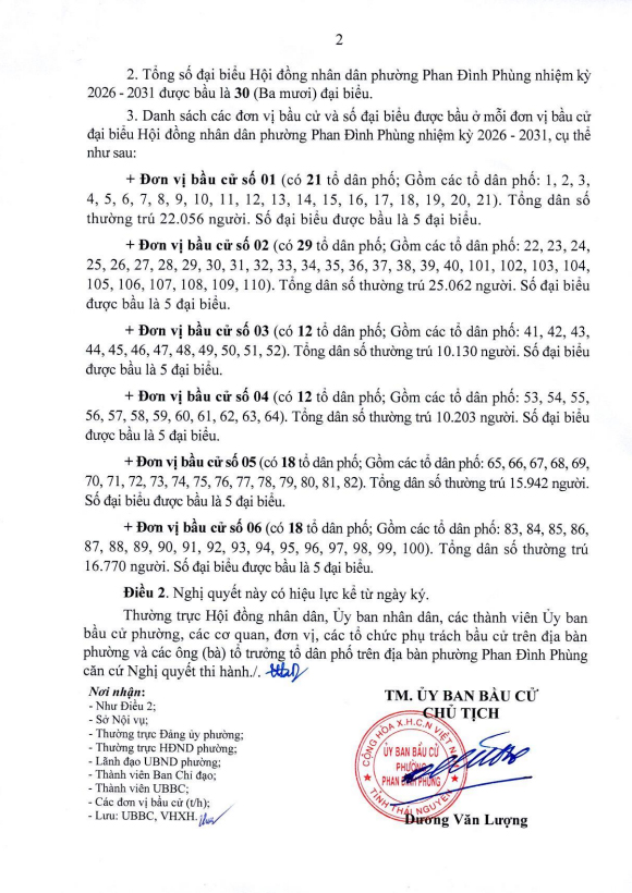 NGHỊ QUYÉT Ấn định và công bố số đơn vị bầu cử, danh sách các đơn vị bầu cử và số đại biểu được bầu ở mỗi đơn vị bầu cử đại biểu Hội đồng nhân dân phường Phan Đình Phùng nhiệm kỳ 2026 - 2031