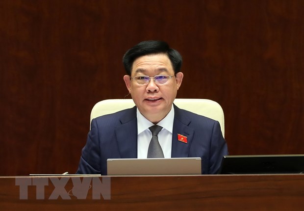 Chủ tịch Quốc hội Vương Đình Huệ điều hành phiên chất vấn. (Ảnh: An Đăng/TTXVN)