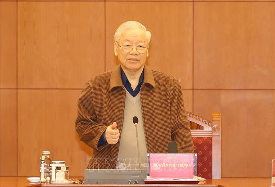 Tổng Bí thư Nguyễn Phú Trọng phát biểu kết luận cuộc họp. Ảnh: Trí Dũng/TTXVN