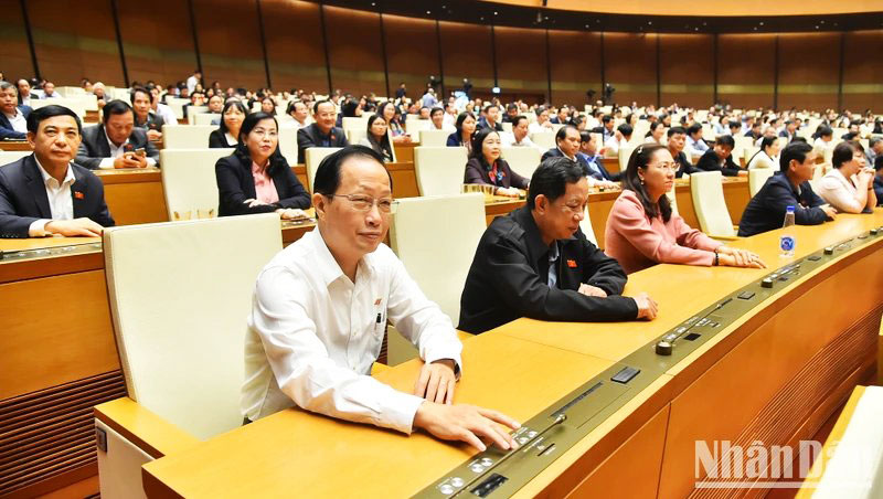 Tiếp đó, Quốc hội tiến hành biểu quyết bằng hình thức biểu quyết điện tử. Kết quả biểu quyết cho thấy, có 453/459 đại biểu tham gia biểu quyết tán thành việc điều chỉnh chương trình Kỳ họp thứ 6, Quốc hội khóa XV, đạt tỷ lệ 91,70%.