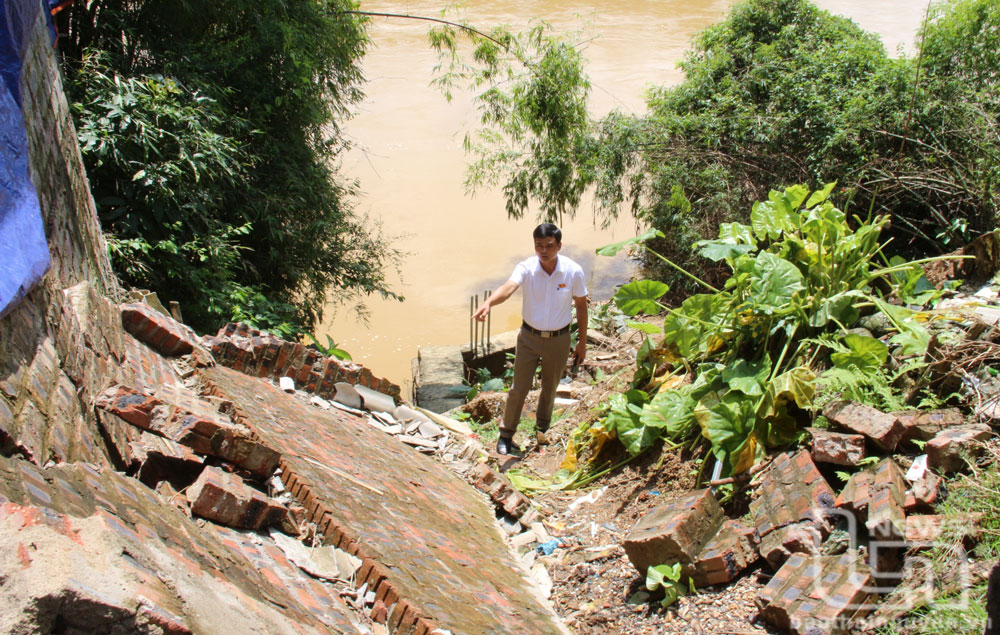 Bà Hoàng Thị La ở xóm Thanh Đàm nói: Gia đình tôi sinh sống qua nhiều đời tại mảnh đất này. Trước đây, khoảng cách từ đất nhà tôi ra đến mép bờ sông khoảng 10m. Mưa lớn liên tục trong năm nay khiến nước sông dâng cao, gây sạt lở đến sát mép đất vườn, công trình phụ của gia đình. Hiện nay, nước vẫn đang tiếp tục chảy siết, xoáy mạnh vào vách tường, móng nhà.