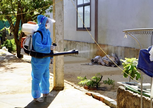 Phun hóa chất diệt muỗi, phòng, chống sốt xuất huyết tại thành phố Đồng Hới. (Ảnh: TTXVN phát)