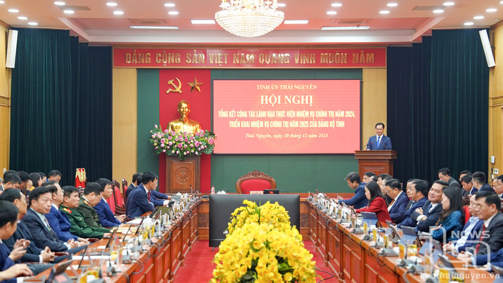 Phát biểu chỉ đạo tại Hội nghị, đồng chí Bí thư Tỉnh ủy khẳng định, năm 2024, dưới sự lãnh đạo, chỉ đạo tập trung của các cấp ủy, sự điều hành năng động, linh hoạt, sáng tạo, quyết liệt của chính quyền; sự nỗ lực, cố gắng của cộng đồng doanh nghiệp, doanh nhân và nhân dân các dân tộc trong tỉnh, Thái Nguyên đã vượt qua nhiều khó khăn, thách thức và đạt kết quả tích cực trên các mặt công tác.