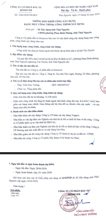 THÔNG BÁO KHỞI CÔNG XÂY DỰNG HẠNG MỤC CÔNG TRÌNH, CÔNG TRÌNH XÂY DỰNG