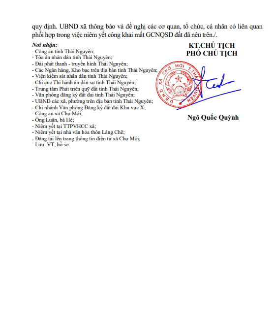 THông báo nêm yết mất GCNQSDĐ ông Luận Làng Chẽ