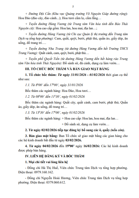 THÔNG BÁO Triển khai tổ chức thực hiện chợ Hoa, chợ Tết Nguyên đán Bính Ngọ 2026 phường Phan Đình Phùng, tỉnh Thái Nguyên