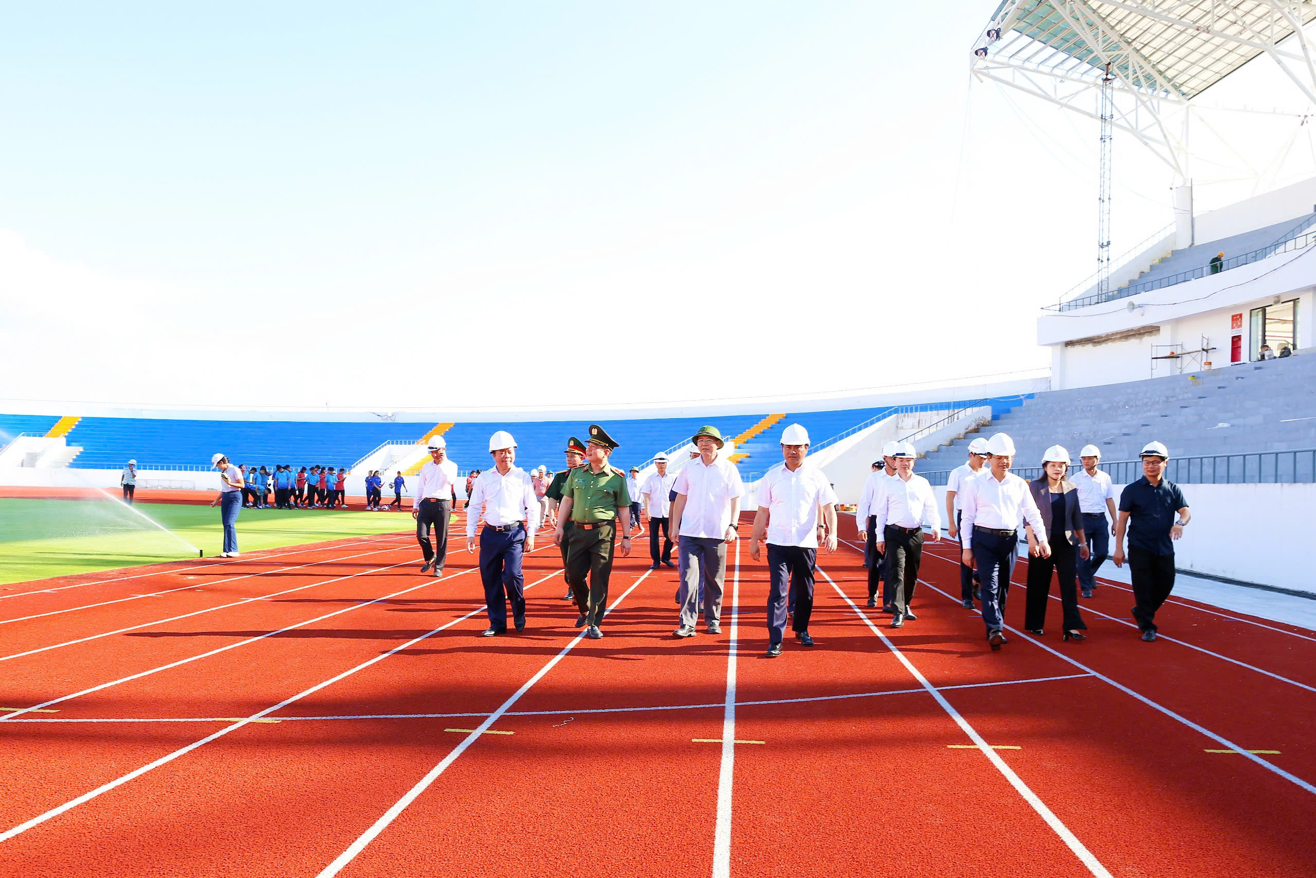Đồng chí Bí thư Tỉnh ủy và các đồng chí lãnh đạo tỉnh kiểm tra công trình Sân vận động tỉnh Thái Nguyên