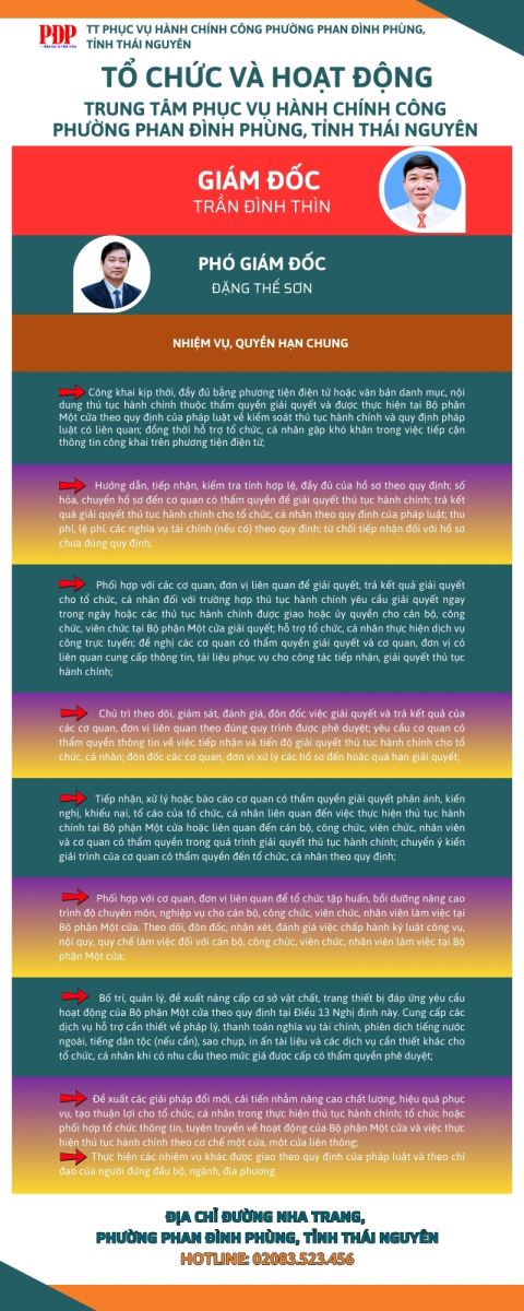 TỔ CHỨC VÀ HOẠT ĐỘNG TRUNG TÂM PHỤC VỤ HÀNH CHÍNH CÔNG PHƯỜNG PHAN ĐÌNH PHÙNG, TỈNH THÁI NGUYÊN