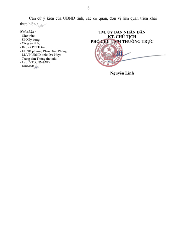 V/v chấp thuận phương án tổ chức giao thông tạm thời phục vụ thi công công trình khẩn cấp trên các tuyến đường đô thị thuộc phường Phan Đình Phùng