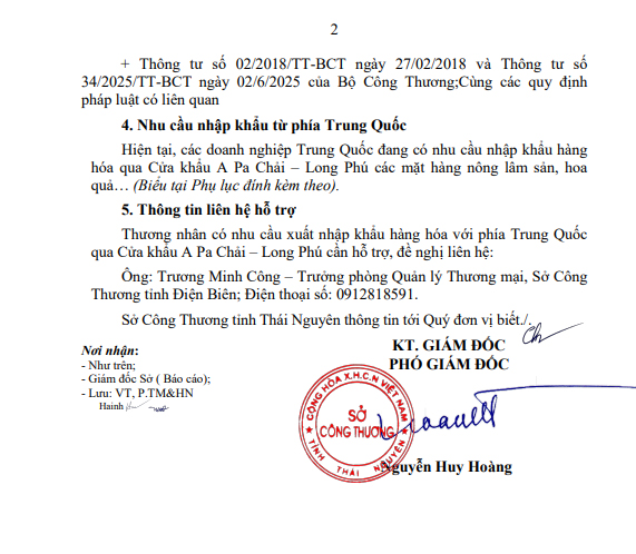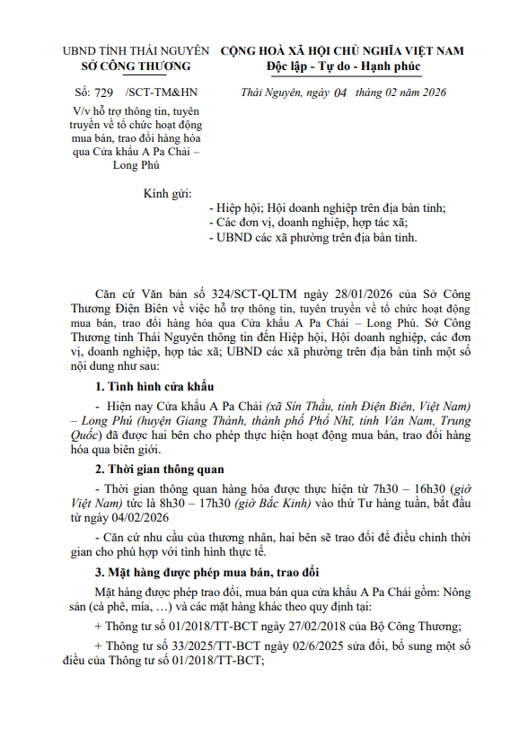 V/v hỗ trợ thông tin, tuyên truyền về tổ chức hoạt động mua bán, trao đổi hàng hóa qua Cửa khẩu A Pa Chải - Long Phú