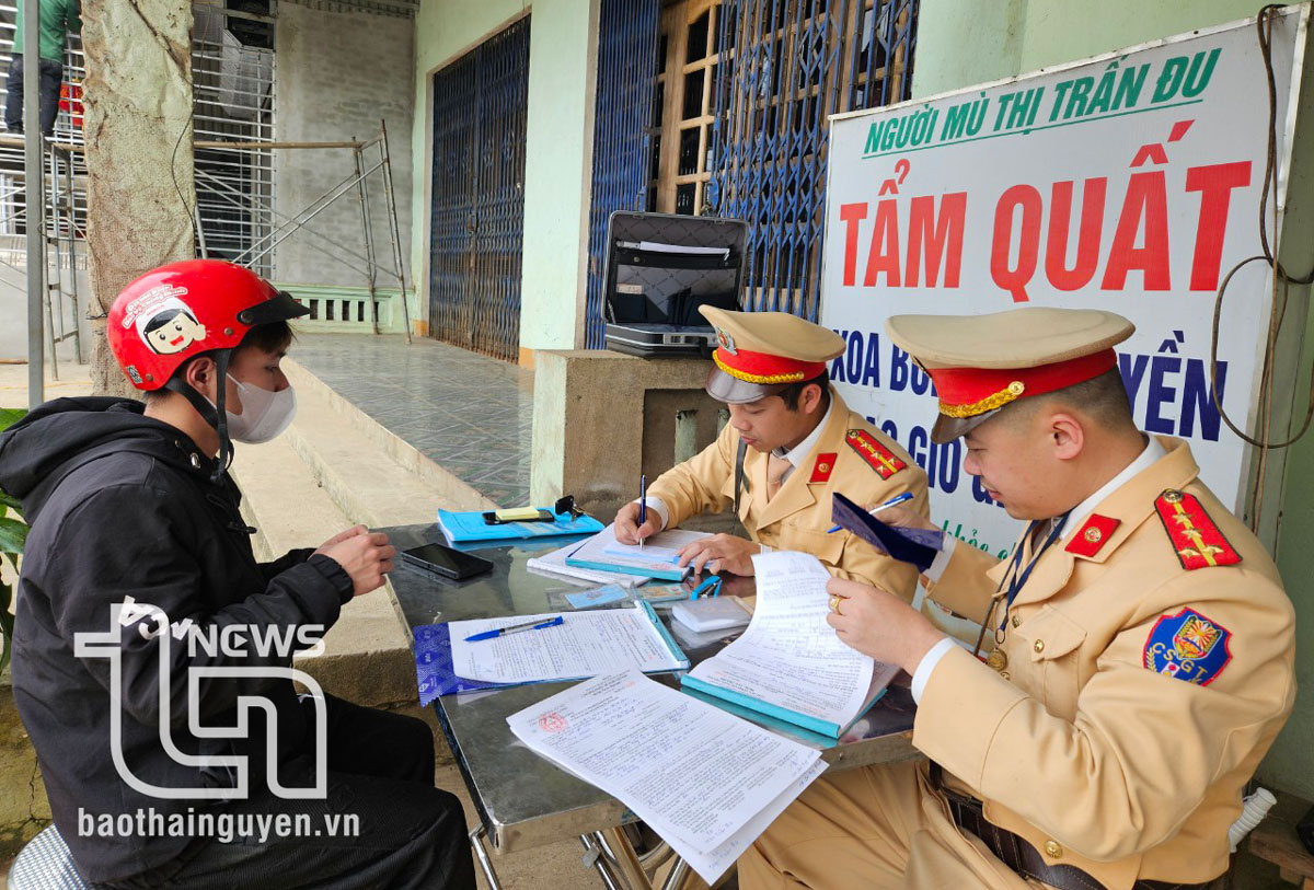 xử lý trường hợp vi phạm giao thông tại Quốc lộ 3, đoạn qua thị trấn Đu.